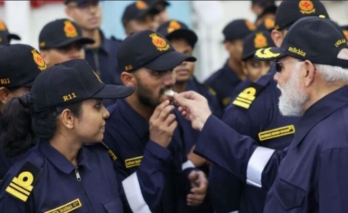 पीएम मोदी ने गोवा और कारवार के तटों पर INS विक्रांत पर दीवाली मनाते हुए कहा कि मैं खुश किस्मत हूं कि इस बार दीवाली का ये पवित्र त्योहार नौसेना के सभी बहादुर सैनिकों के बीच मना रहा हूं।