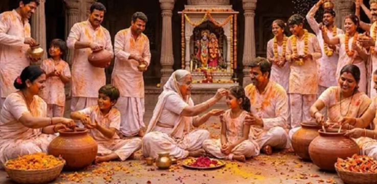 फूलों की भीनी-भीनी खुशबू और केसरिया रंग के बीच जब मंदिर के आंगन में भजन गूंजते हैं, तो मन को असीम शांति मिलती है। यह दृश्य हमें याद दिलाता है कि खुशियां मनाने के लिए हमें रसायनों की नहीं, बल्कि प्रकृति के साथ सच्चे जुड़ाव की आवश्यकता है।